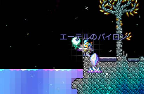 こちらの「パイロン」自体は前からあるアイテムで説明文では「別のパイロンへテレポートする」と書いてありますが、こちらは「パイロンからパイロンへ移動する事」ができるアイテムなんです。テラリアはそこまでワールドが広い訳ではないのですが、思ったより移動は面倒です。そちらに対してそれを解消する移動手段やアイテムもいろいろ用意されていますが、これもその移動手段の1種という事になります。